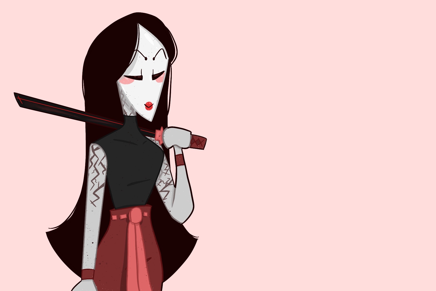 Alcohol marker full-body portrait of Akahana (Original Character)