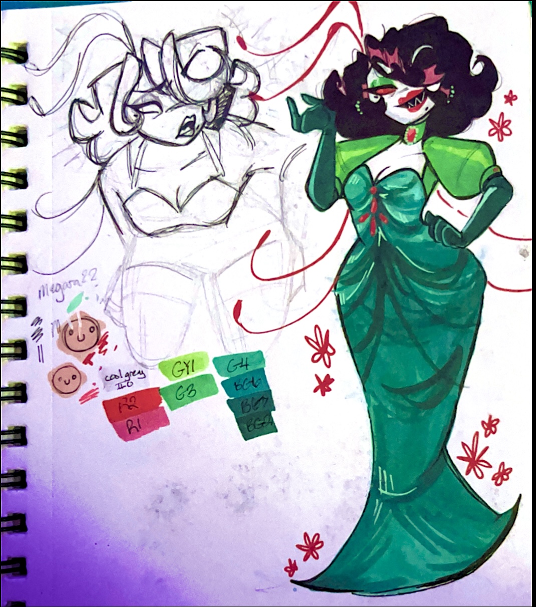 Mixed-Media Full Body plus Pencil Sketches of Original Character