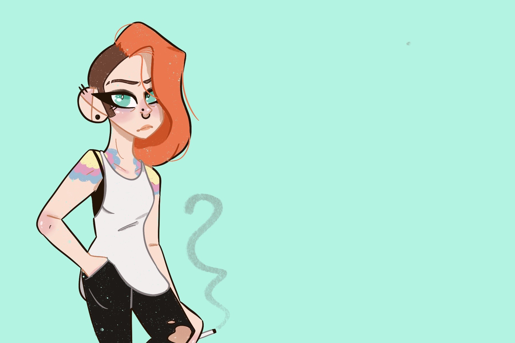 Mixed-Media Full Body Sketch of Jekka (Original Character)
