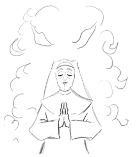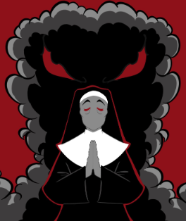 My creative process is pretty simple. First I would work up a couple sketches and then share them with my design partner to discuss what's working and what's not. After some back and forth we decided on the image of a nun with a "ominous presence" standing behind her. I then continued to refine the design, the layout and color palette, until we were both happy with the final piece.