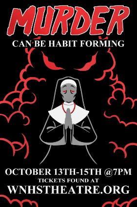 Create a poster to promote the WNHS theater production of “Murder Can be Habit-Forming”, a murder mystery/who done it. I partnered with another classmate on the overall look and design of the poster, she would later build the final poster for printing. We also needed to get the approval of the Westerville Theater Boosters, since they were the ones putting on the performance.