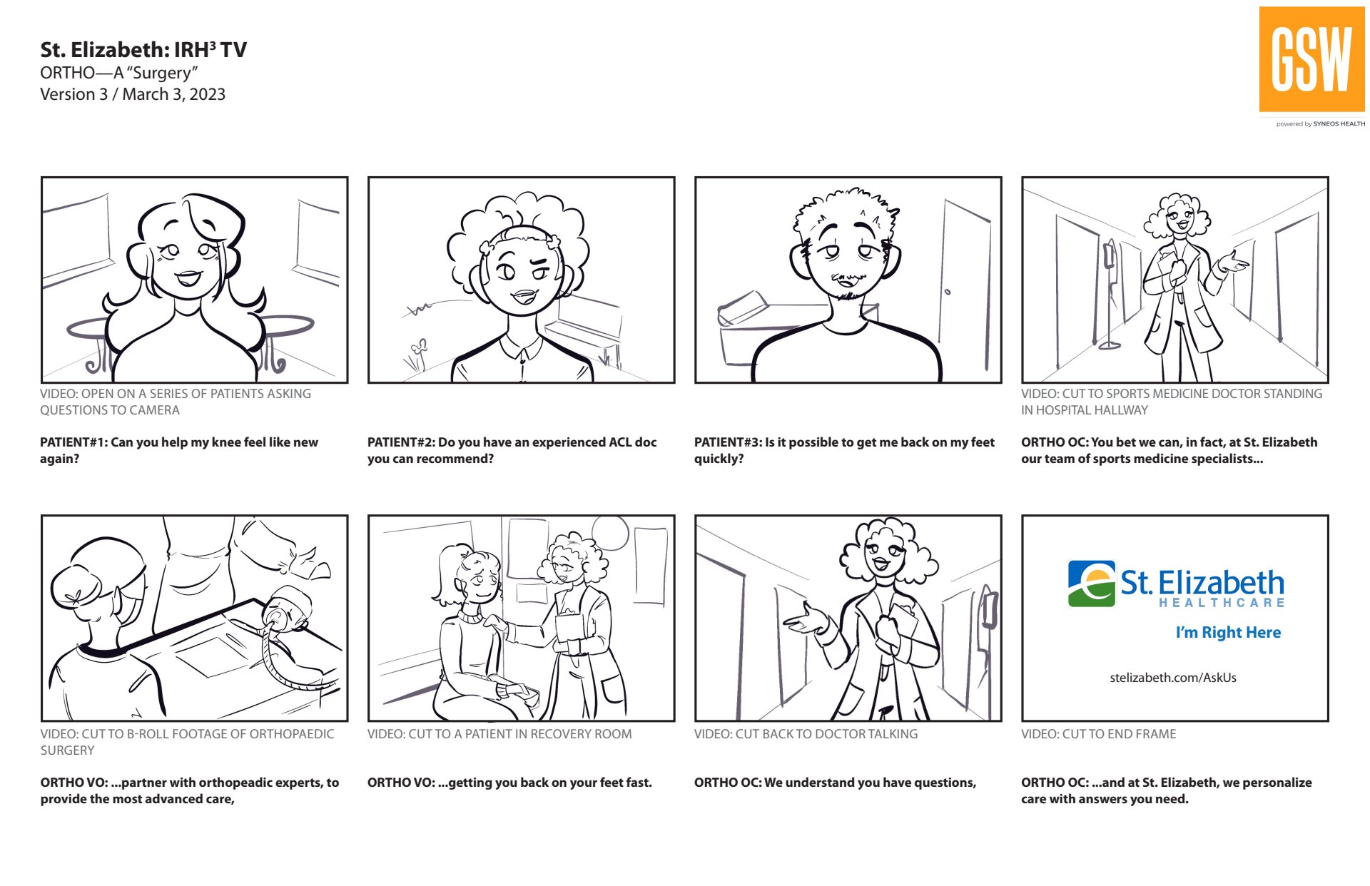 St. Elizabeth Healthcare (located in Northern Kentucky) is creating a series of television commercials and we are need of some of the scripts visualized as storyboards before shooting to help with planning of the overall production.